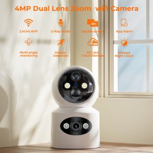 •PTZ function, 4x digital zoom, 355° rotation for pan.