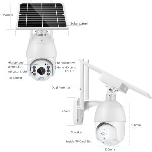 | Dimension | camera: 15.6*10cm; solar panel: 27*17cm |